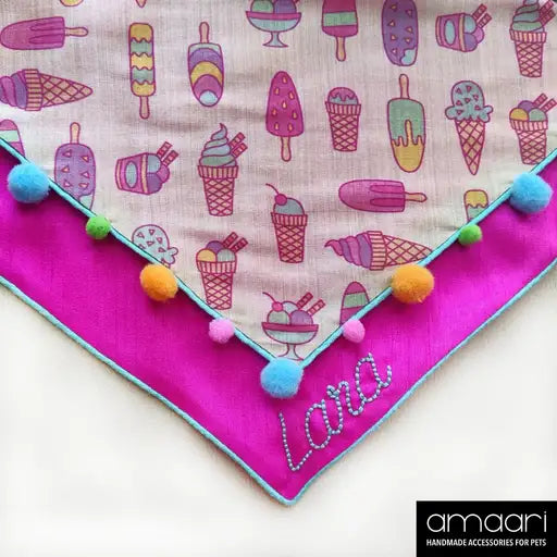 Made with scoops of love, our handmade double-layered Icy Cool Ice Cream scarf is perfect for pets to chill this summer!