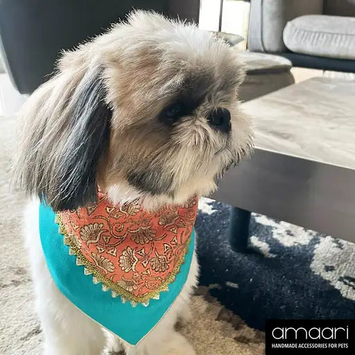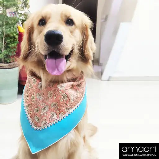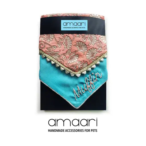 Woven from rich brocade with delicate gold floral design, it captures the essence of antique imperial tapestries. Perfect for any celebration, from weddings to Diwali, this scarf shines with a glittery border, ensuring your pet looks royally charming.