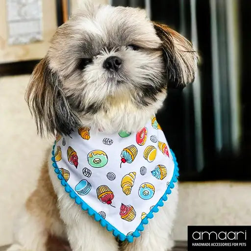 For the furry gourmand who perks up at the smell of sweets, our Puppy Patisserie Scarf is a delightful choice! Decked out in a cute confectionery print, it’s perfect for pets who love a good treat.