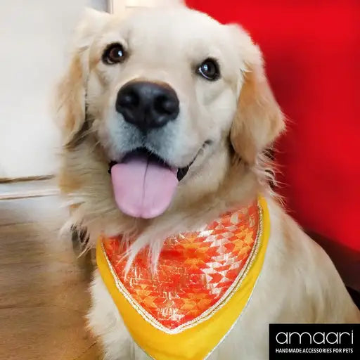 Our handmade double-layered scarf is made with Banarasi Brocade fabric having a rich zari geometric pattern and delicate golden trimmings. It is perfect for any celebration or festivity.