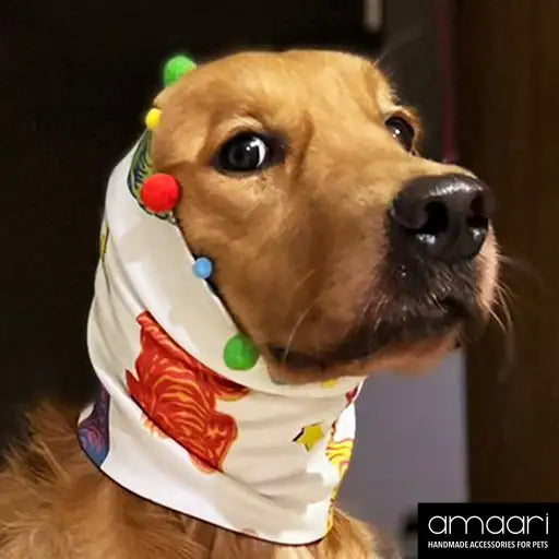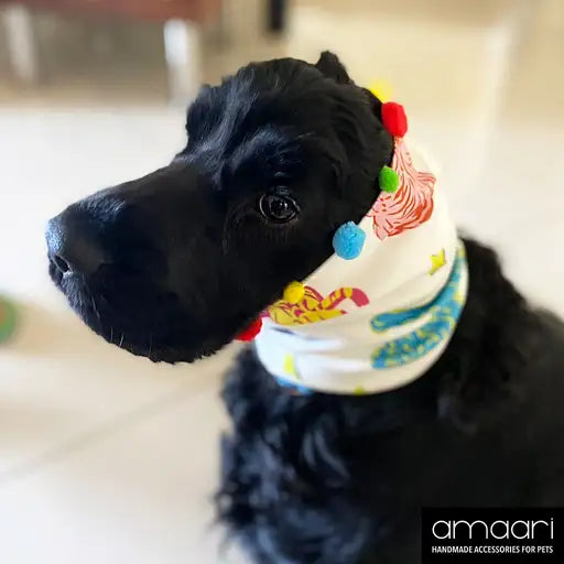 It can also double up as a snood/ hair band for dogs with long ears. So no more messy ears during meal time or walks!
